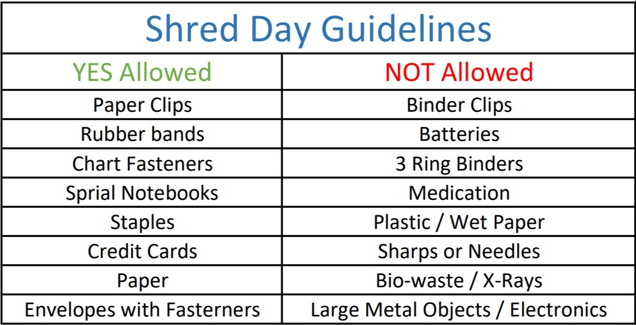 Drop off any paperwork you would like to be shredded at the front desk and we will shred it for you.